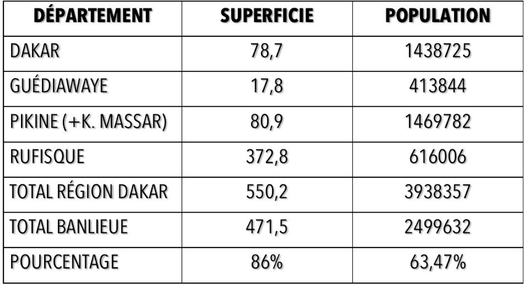 Le projet s’intéresse à la banlieue qui occupe la partie orientale de la Région de Dakar, faisant frontière avec la région de Thiès. La banlieue dakaroise regroupant les départements de Guédiawaye, Pikine, Keur Massar et Rufisque occupe environ 86% de la superficie de la Région de Dakar, alors que 63,4% de la population y vivent.