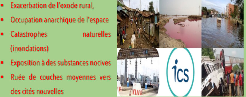 zones non-aedificandi), source de catastrophes naturelles (inondations) et d’exposition à des substances nocives (voisinage d’industries chimiques, pesticides). Ensuite, on a observé, suite à la saturation foncière du département de Dakar, une ruée de couches moyennes vers des cités nouvelles, à la périphérie des quartiers et villages traditionnels.