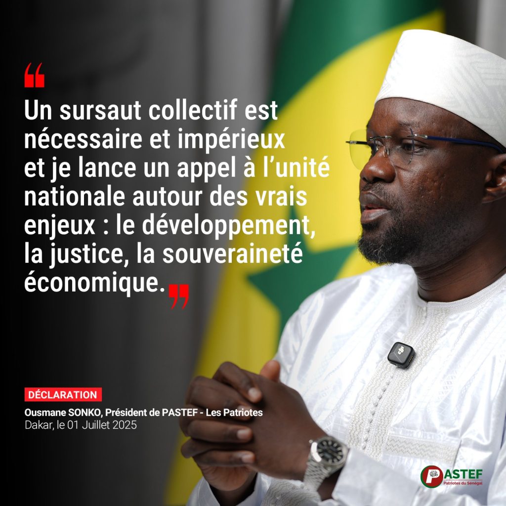 - exhorte le PASTEF à poursuivre son action politique dans le cadre d’un horizon démocratique, en vue d’une appropriation du projet de transformation systémique par les larges masses populaires, en dehors de toutes velléités autoritaires,